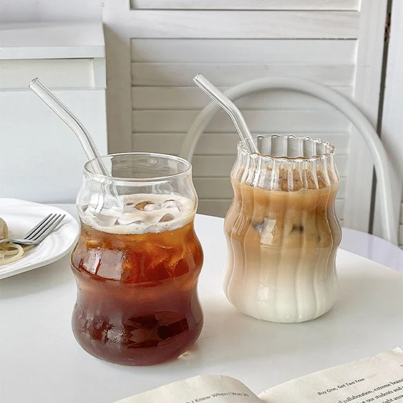 Sip in Style with our Sophisticated High Borosilicate Glass Cloud Cup or Try our Spiral Transparent Coffee Cup with Straw for Juice, Milk, & More